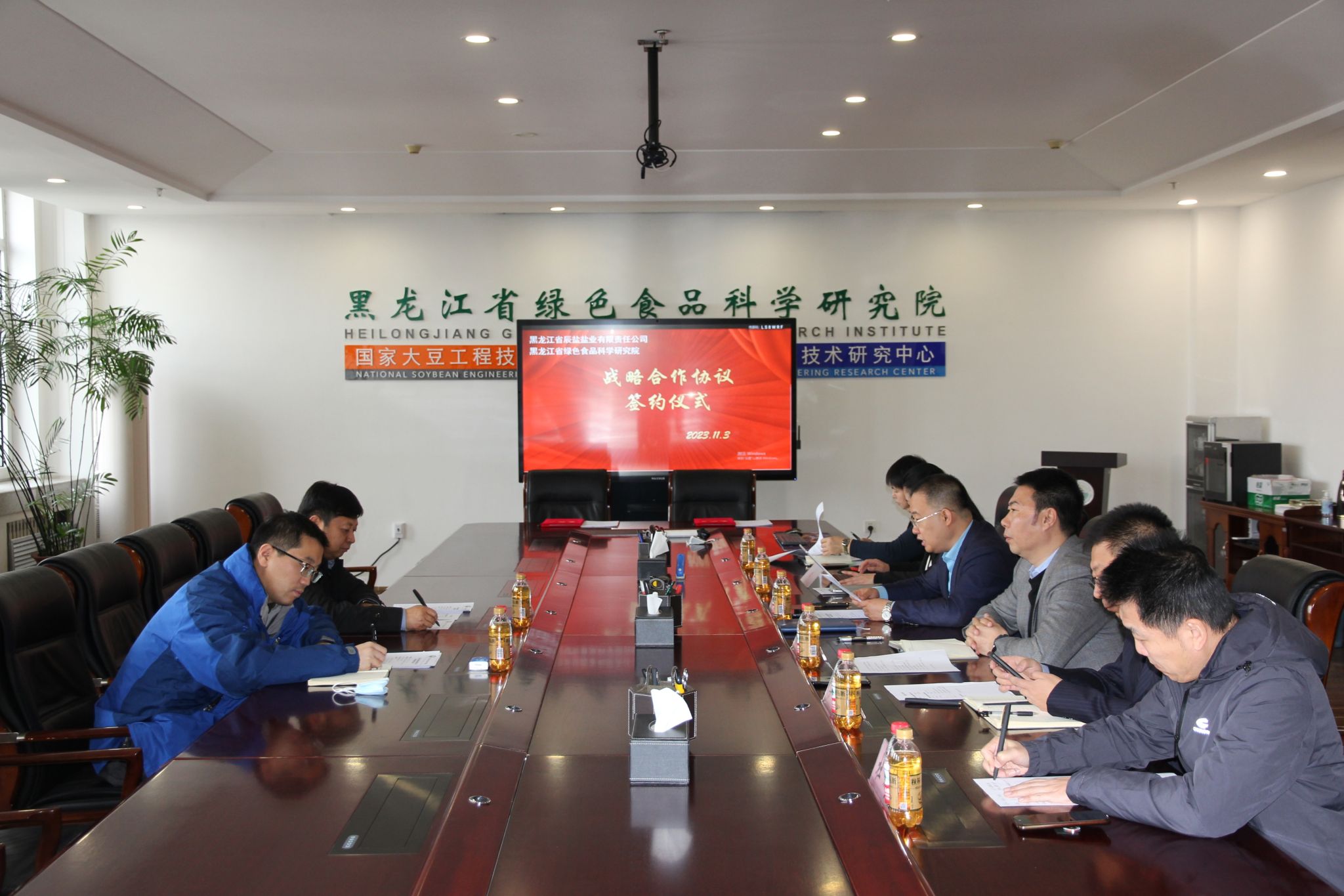11月3日,在绿研院举行了绿研院与黑龙江省辰盐盐业有限责任公司战略合作及技术服务合作签约仪式。黑龙江省辰盐盐业有限责任公司董事长姜景辉、副总经理高飞,绿研院党委书记、院长高放,副院长杨玉琢及相关业务部门负责同志参加了签约仪式,签约仪式由杨玉琢主持。
